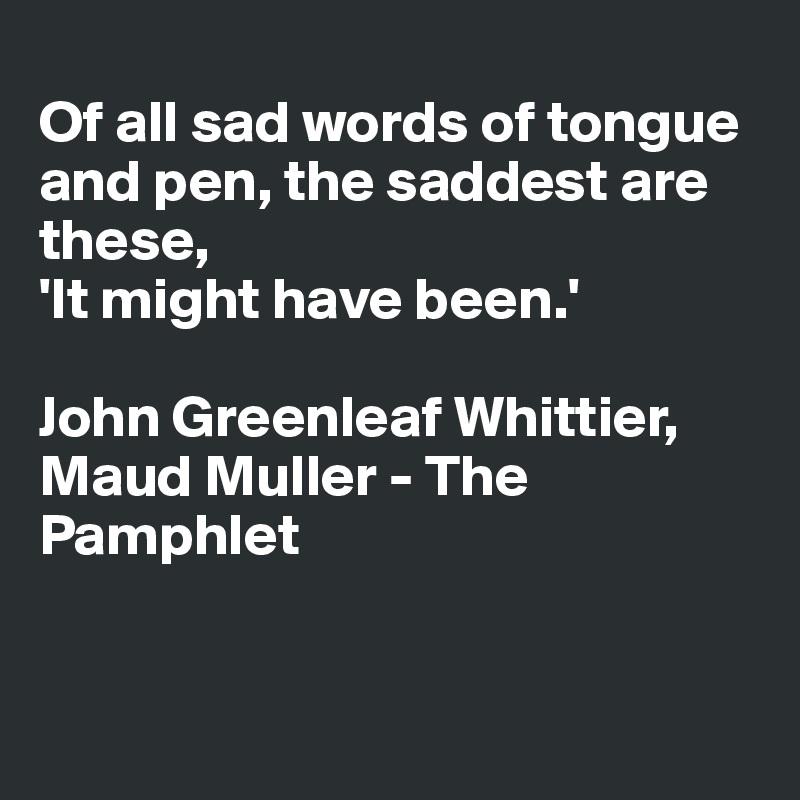 Of All Sad Words of Tongue or Pen. The saddest are these. The American poet John Greenleaf Whittier once famously reflected.