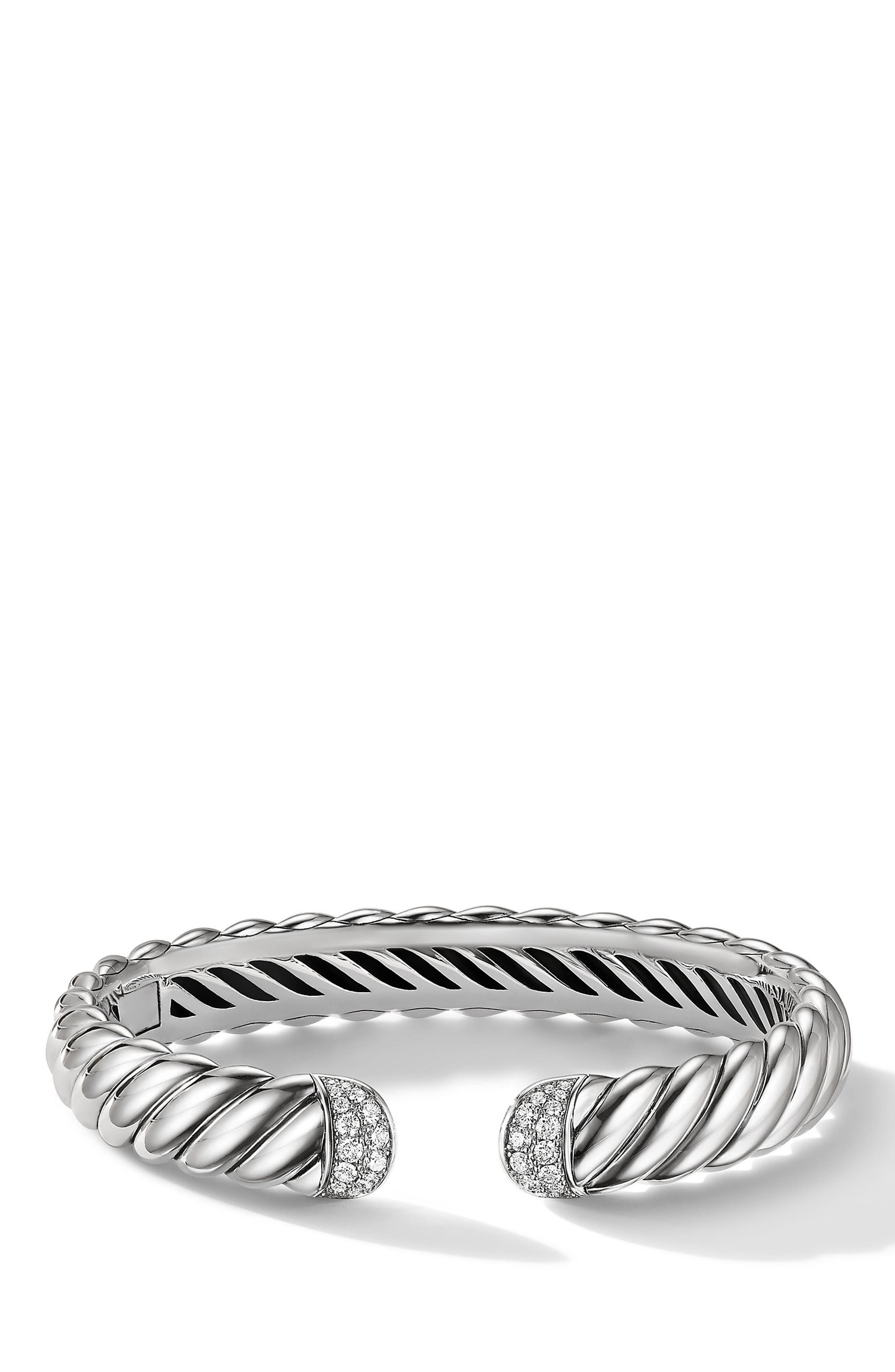 David Yurman Waverly Bracelet With Gold Fine Jewelry - 3590755. Hinged on one side. This is a wide sterling silver 10mm cable cuff bracelet. Buy David Yurman Womens Metallic Waverly Bracelet. Free 1-3 day shipping for a limited time. The circumference on the inside of the bracelet is 6 i. Practically new very rare and sold out. New and preowned with safe shipping and easy returns. The classic cable design element creates movement texture and depth the ends contain a faceted Amethyst stone for a sparkly accent.