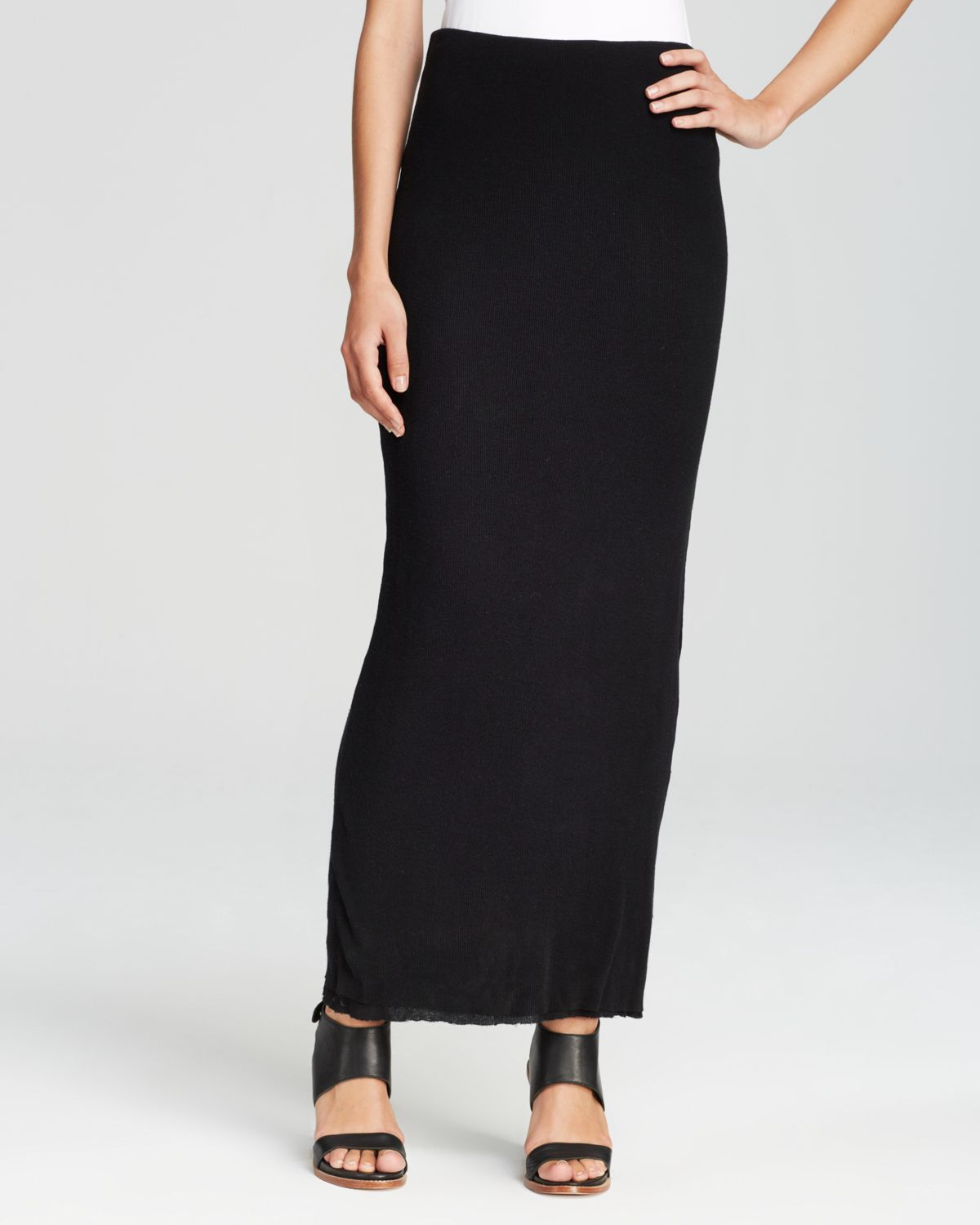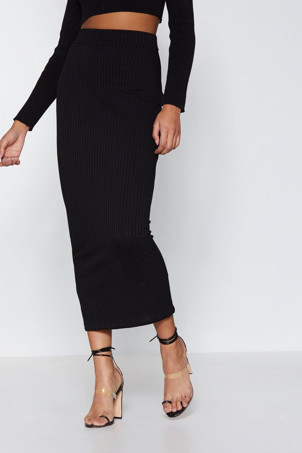 Get a Sale Alert. The Ribbed Maxi Skirt is a high waisted pull-on style pencil skirt in a classic goes-with-everything black. This maxi ribbed skirt is very beautiful yet modest.