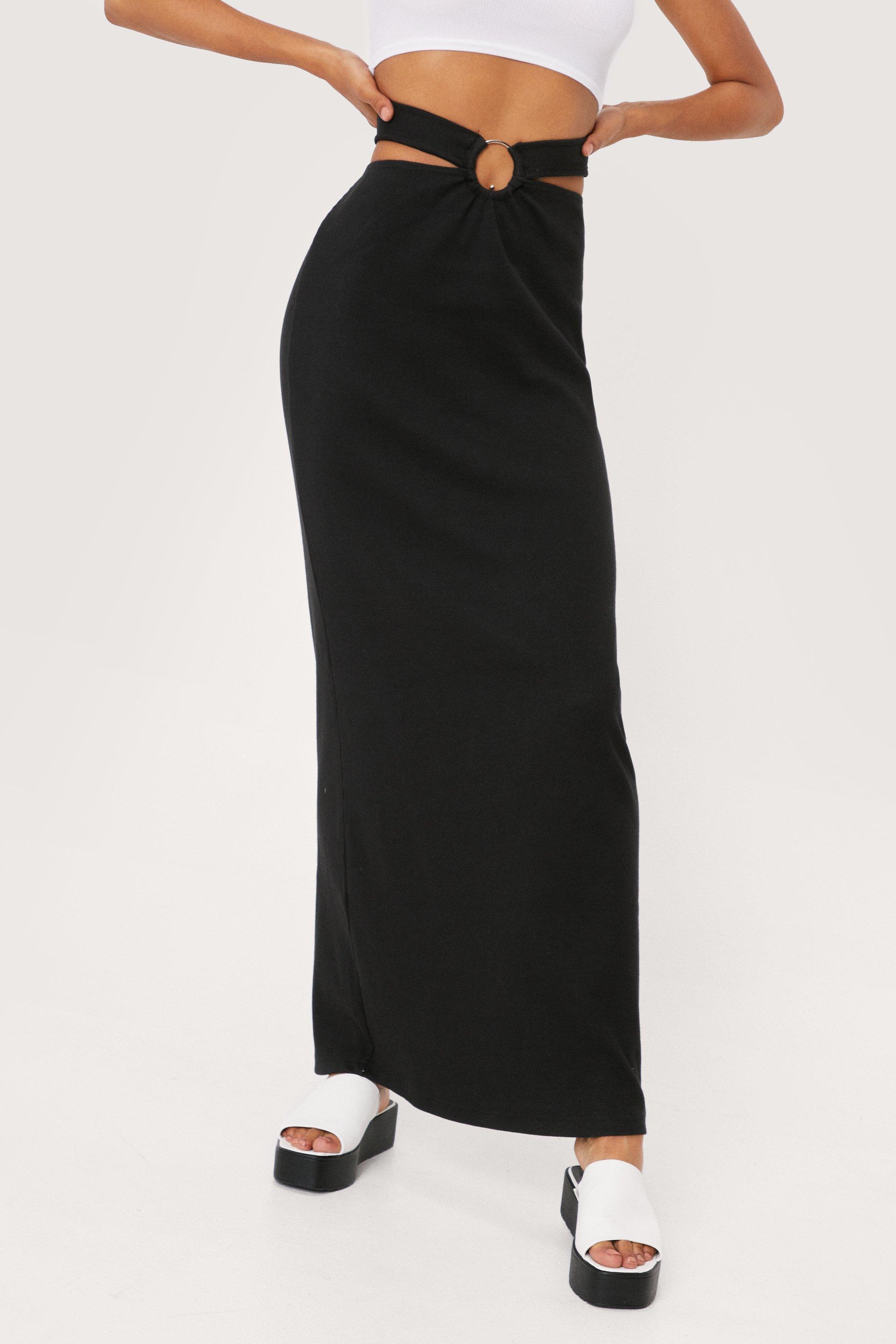 Ribbed black maxi skirt. Dress it down with sneakers or wear with a button-down blouse for the office. Get a Sale Alert. From printed styles to basic cuts shop the range here.